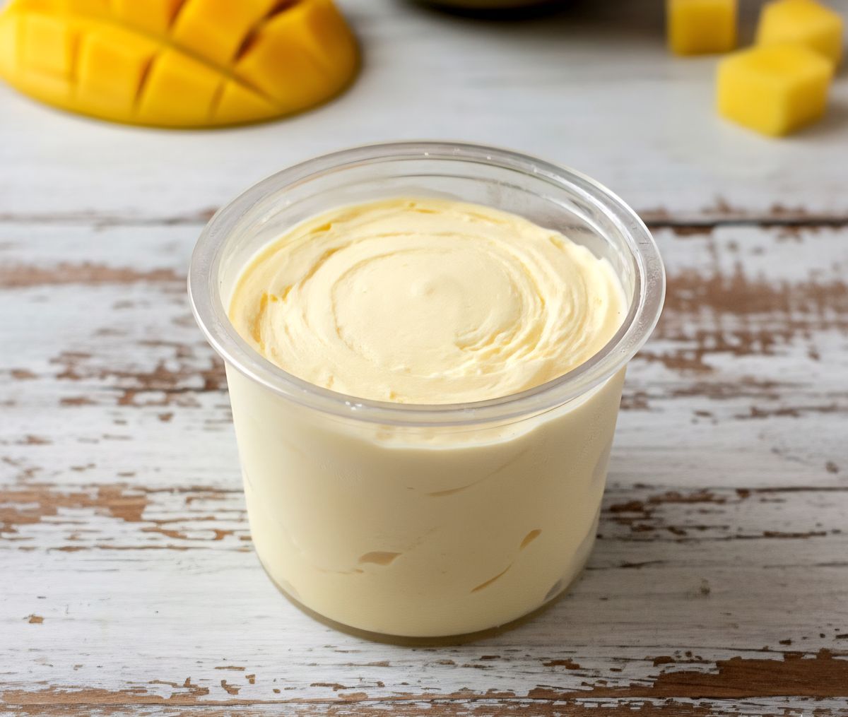 מתכון גלידת חלבון בטעם מנגו. קלה להכנה בעזרת מכונת NINJA CREAMI. עשירה בחלבון ודלה בקלוריות. אינה מכילה סוכר או שומן רווי לעומת גלידות קנויות.